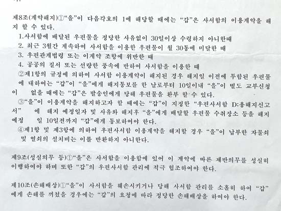 016À¸·Î »ç¿ëÀÚ Á¤º¸°¡ ±â·ÏµÈ »óÅ¿¡¼ ÀÌ»ç·Î ¿ìÆí¹°±îÁö ¹ÞÁö ¸øÇÏ¸é¼ °è¾àÀº ÇØÁö µÇ¾ú½À´Ï´Ù. ¿À·£¸¸¿¡ ¹æ¹®ÇÑ »ç¼ÇÔÀÌ ¿¸®Áö ¾Ê¾Æ¼ ¹«Ã´ Ȳ´çÇß½À´Ï´Ù.